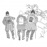 Tekeningen in viltstift over het leven van alle dag.